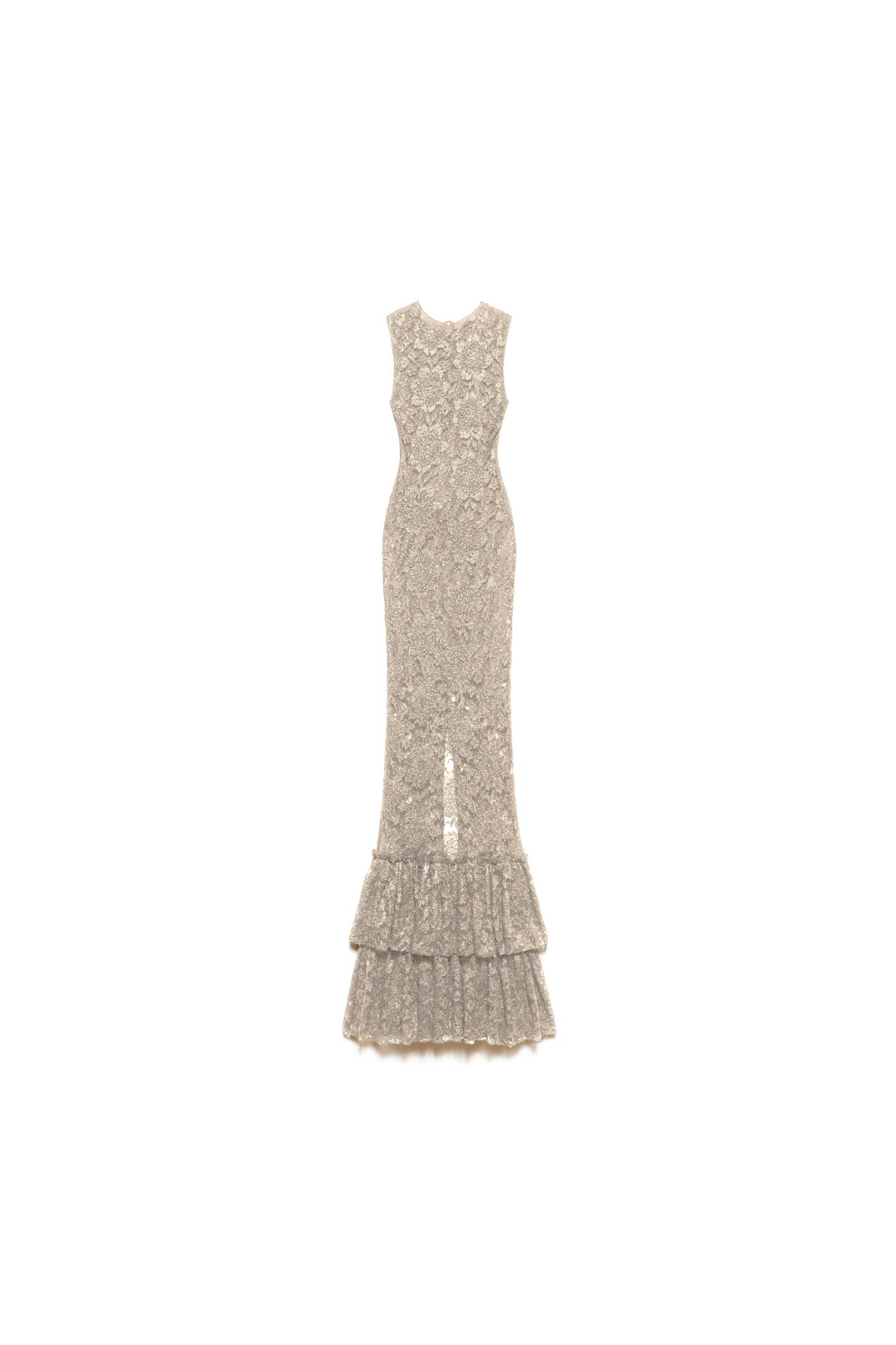 Abito lungo smanicato pizzo lurex