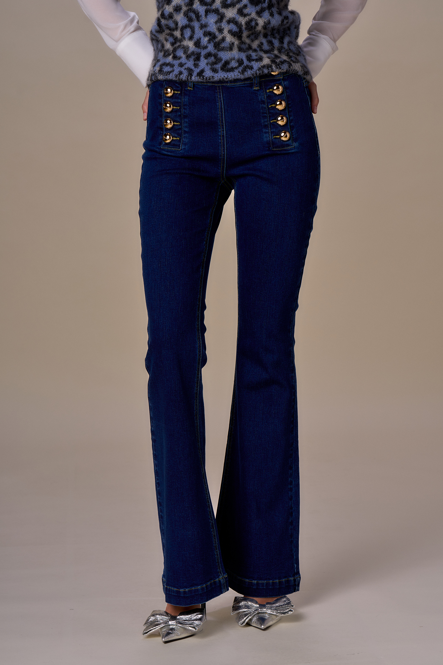 Jeans zampa bottoni oro