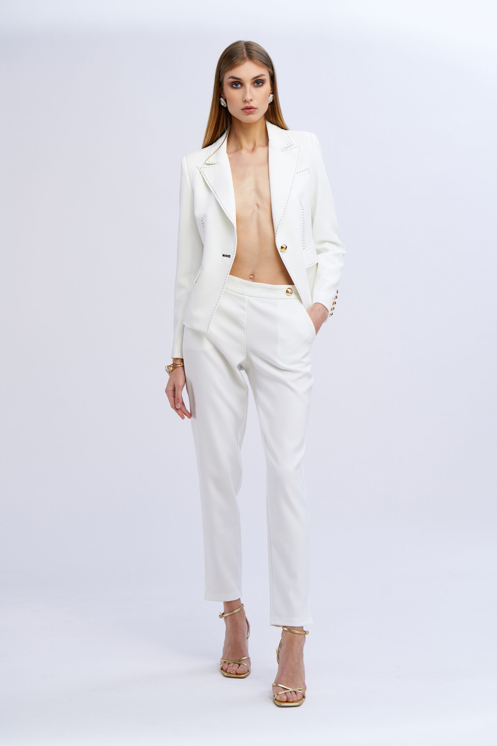 Pantalone stretto spacchetti c/bottoni oro